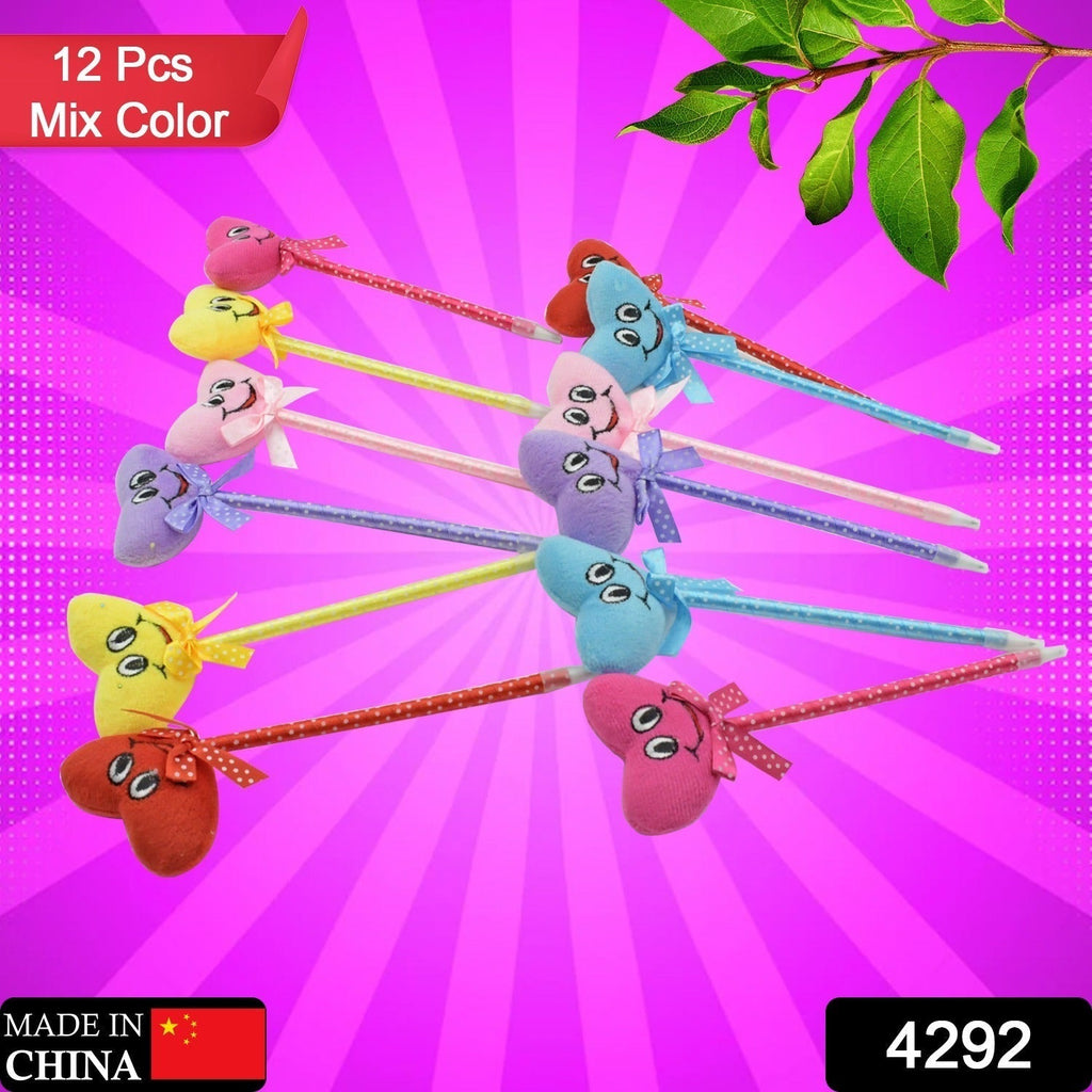 Cute Cartoon Shape & Heart Design Facy Writting Pen Attached Rattle | Ball Pen Smooth Writing For Wedding , Events & Multiuse Pen  Best Pen l Use for Kids (12 Pcs Set Mix Design & Color)