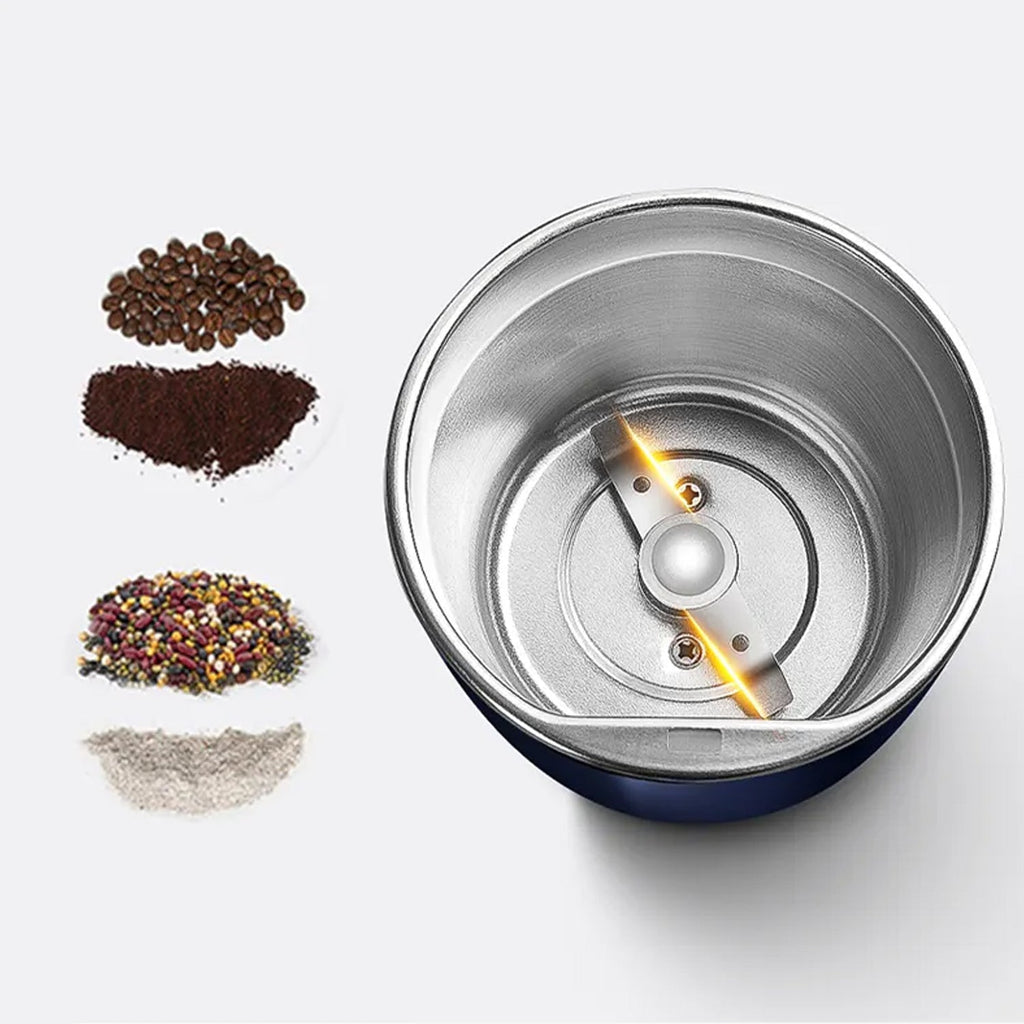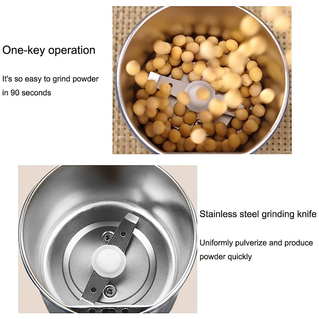 - ★Efficient electric grinder that grind coffee beans, rice, yam, rock sugar, corm, dry pepper and other nuts in low-noise.