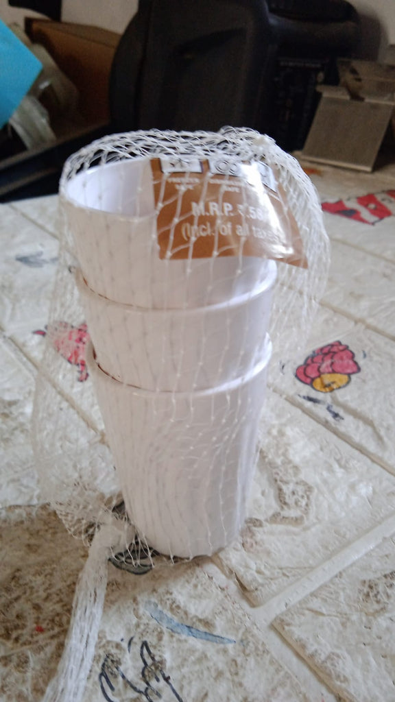 5719 Small Plastic Coffee / Tea Cups / Glass Reusable Plastic Cup Mug Lightweight Microwavable Dishwasher Safe Unbreakable Camping Coffee Mugs for Tea Milk Water Juice Tea (3 Pcs Set)