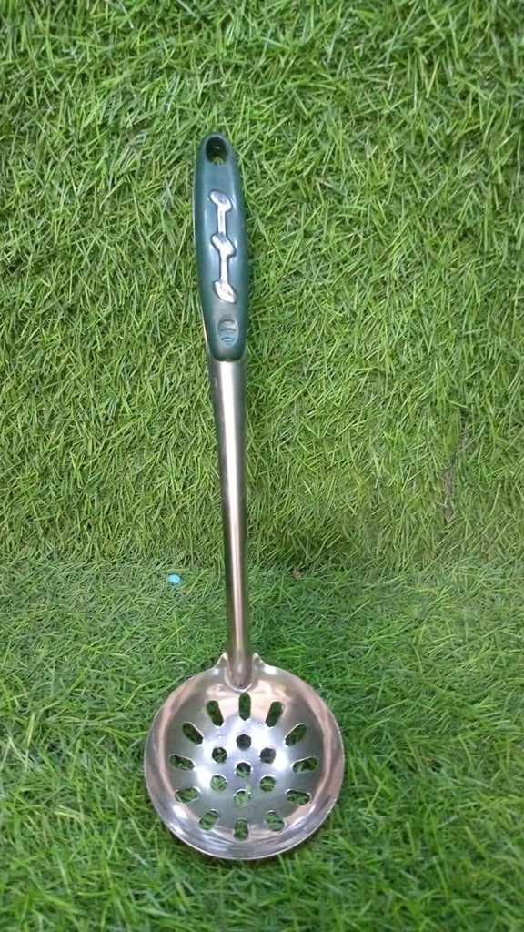 7007 Stainless Steel Slotted Spoon with Plastic Handle, Comfortable Grip Design Strainer Ladle for Kitchen(27cm).