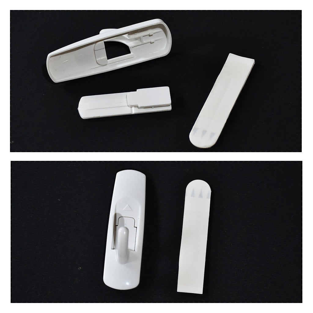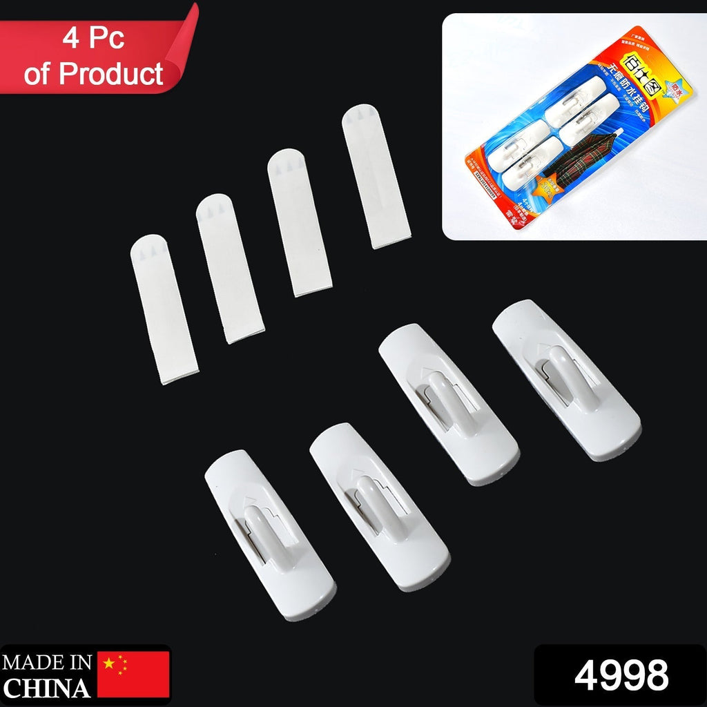 4998 Adhesive Sticker Plastic Hook 4 Hooks and 4 Sticker strips, Damage-Free Hanging, Holds Strong Plastic Hook