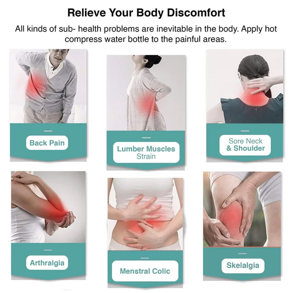 - Small hot water bag pain Reliefer. warm bottle for hot water is best for sore muscles, stress, migraines, menstrual aches and cramps. The cover is soft which protects you from excessive heat and makes your skin feel great.