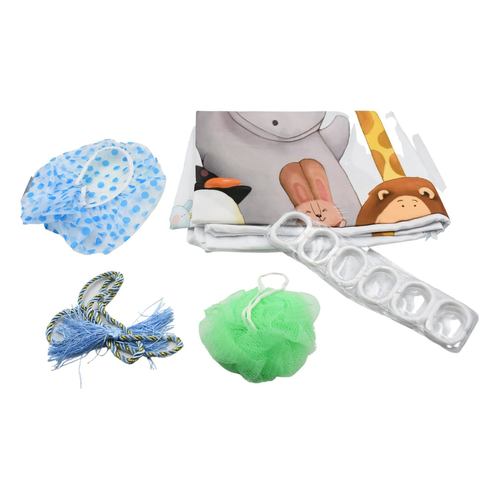 • This Shower Curtain Set includes everything you need for the perfect bathroom experience. The lightweight, 120x200 cm shower curtain is paired with a shower cap and a small loofah, plus 12 sturdy hooks that will last for years. Upgrade your bathroom today!