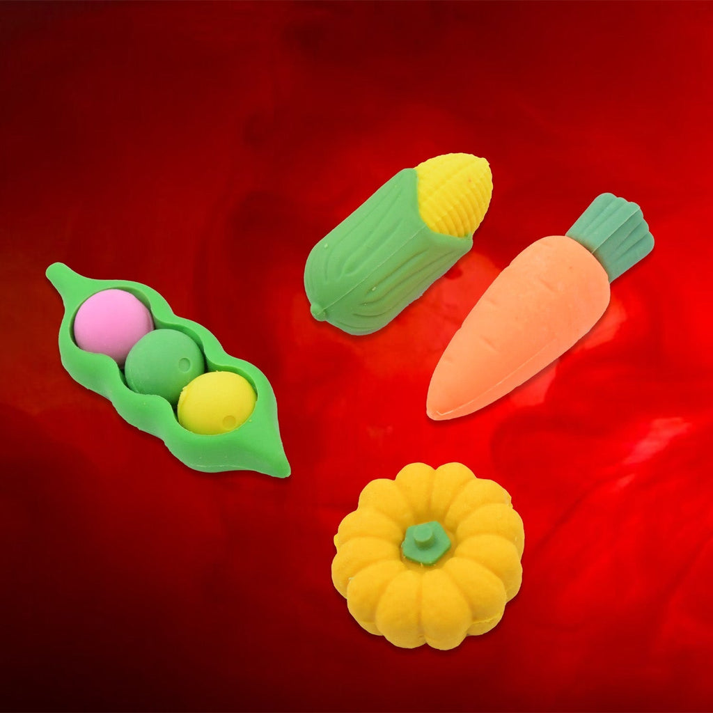 Mini Cute Vegetables and Fruits Erasers or Pencil Rubbers for Kids, 1 Set Fancy & Stylish Colorful Erasers for Children, Eraser Set for Return Gift, Birthday Party, School Prize,3D Erasers (4 pc Set)