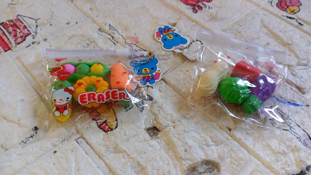 - 3D Fancy Colorful Erasers kit is the best return gift options for children, School prize, birthday gifts. All the items in the kit are completely useful. Gifting this multipurpose stationary set to your favourte kid will be a wonderful delight.