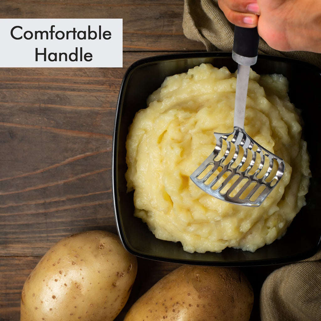 - Stainless steel mashing plate of the potato masher are extremely easy for cleaning under tap water or mildly hot water. Since it's durability and health performance, long time use is guaranteed.
