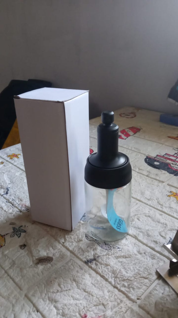 5522 Heat-Resistant Condiment Container Seasoning Box Glass Condiment Canisters Pots Bottle with Serving Spoons for Salt Spice Honey Sugar BBQ Resturant Jar, Oil Bottle Honey Jar Dispenser, Airtight Cap Transparent (1 Pc)