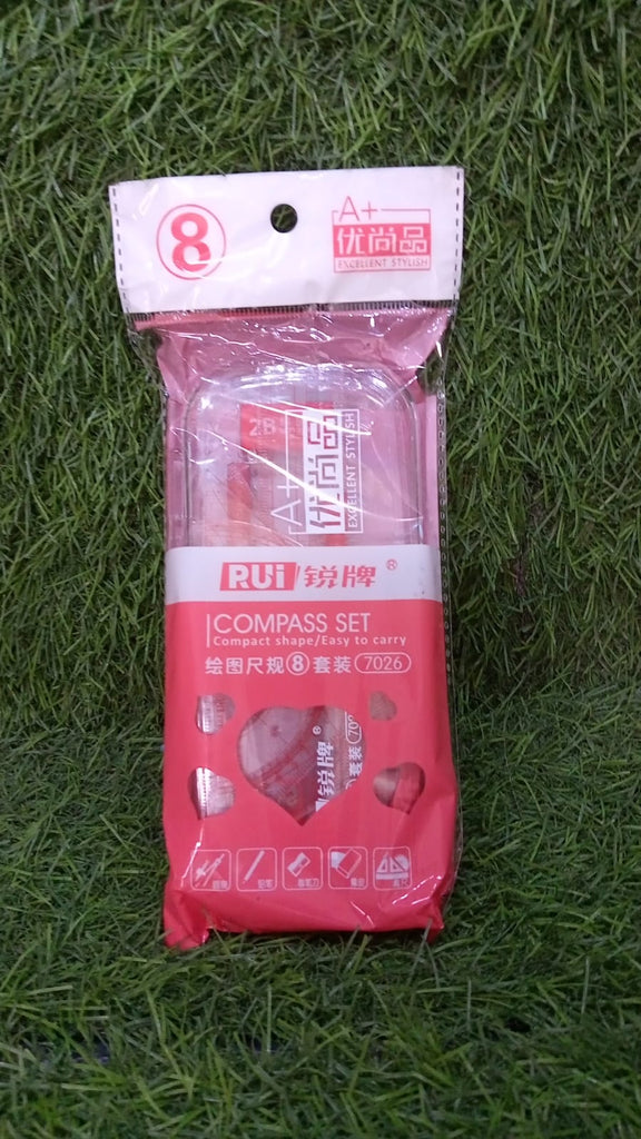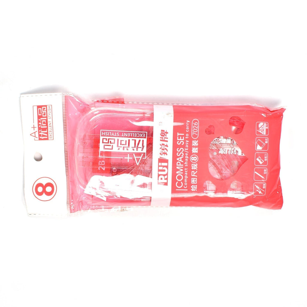 - 8 Pieces Per Set This geometry set contains 8 pieces math geometric tools, including 1 compass, 1 rubber, 4 rulers, 1 pencil.