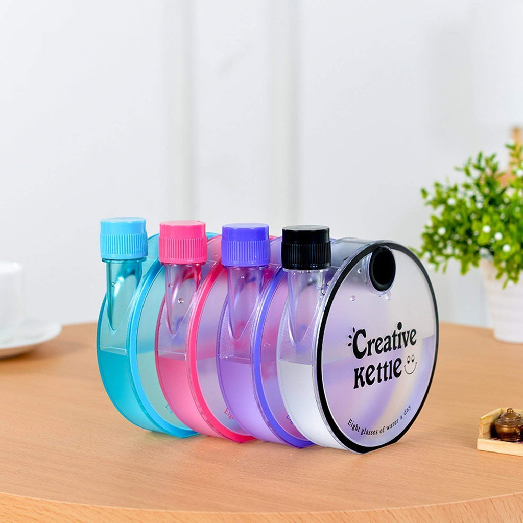 - THE ULTIMATE CLEAR FLASK: Notebook water bottle is contrary to most water bottles on the market, our flask is a versatile liquid container! It can store ANYTHING ranging from sodas, fruit infusions, juice, tea and other refreshments, salad dressing, sauces, cold soups, baby food, as well as non-edible travel essentials, such as shampoo and conditioner and much, much MORE!Color: Clear, Package Contains 1 Pc Round Flat Snail Plastic Bottle Portable Ultra Slim Water Bottle. Capacity: 350ml