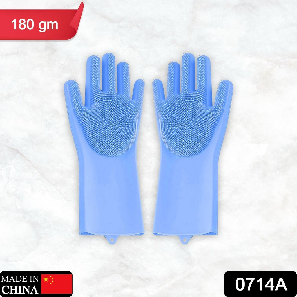 0714A Reusable Silicone Cleaning Brush Scrubber Gloves (Multicolor)