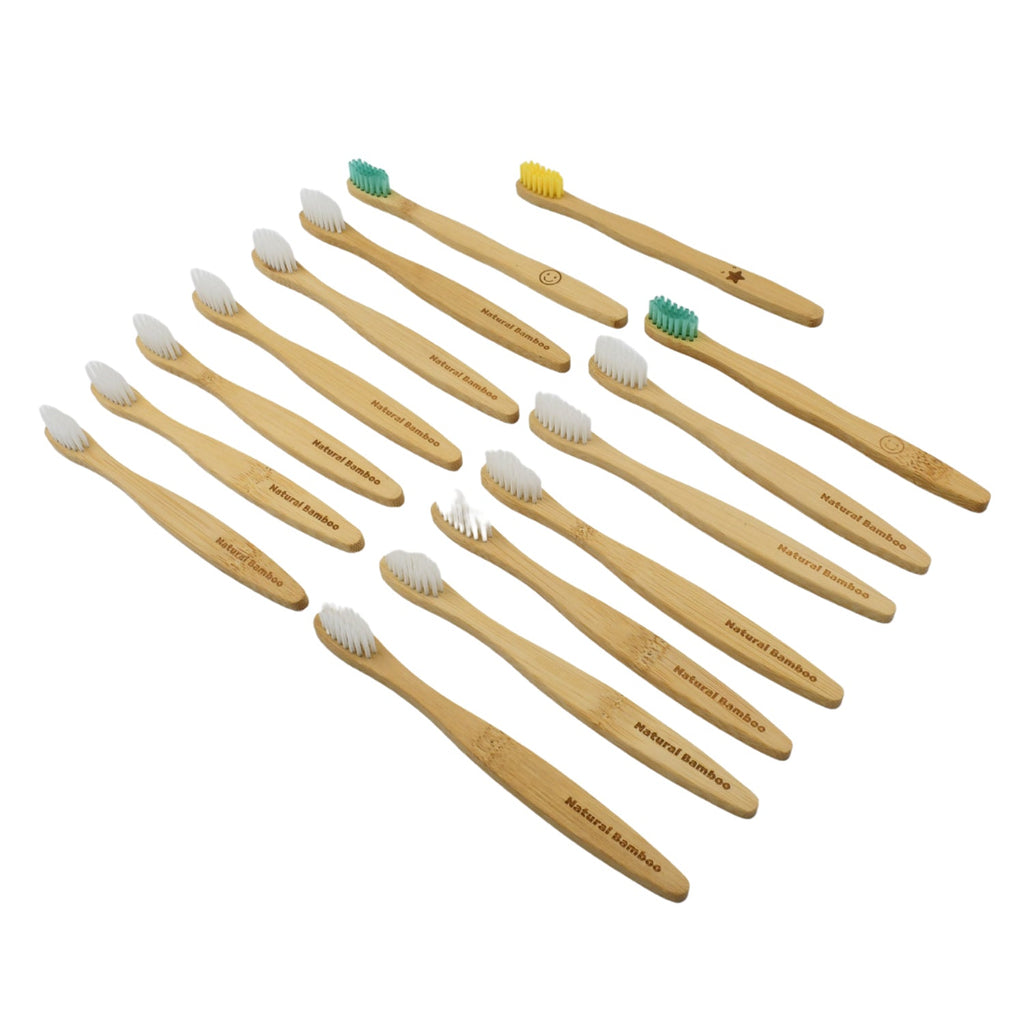 13084 Bamboo Wooden Toothbrush Soft Toothbrush Wooden Child Bamboo Biodegradable Toothbrush, Manual Toothbrush for Adult, Kids (15 pcs set / With Round Box)