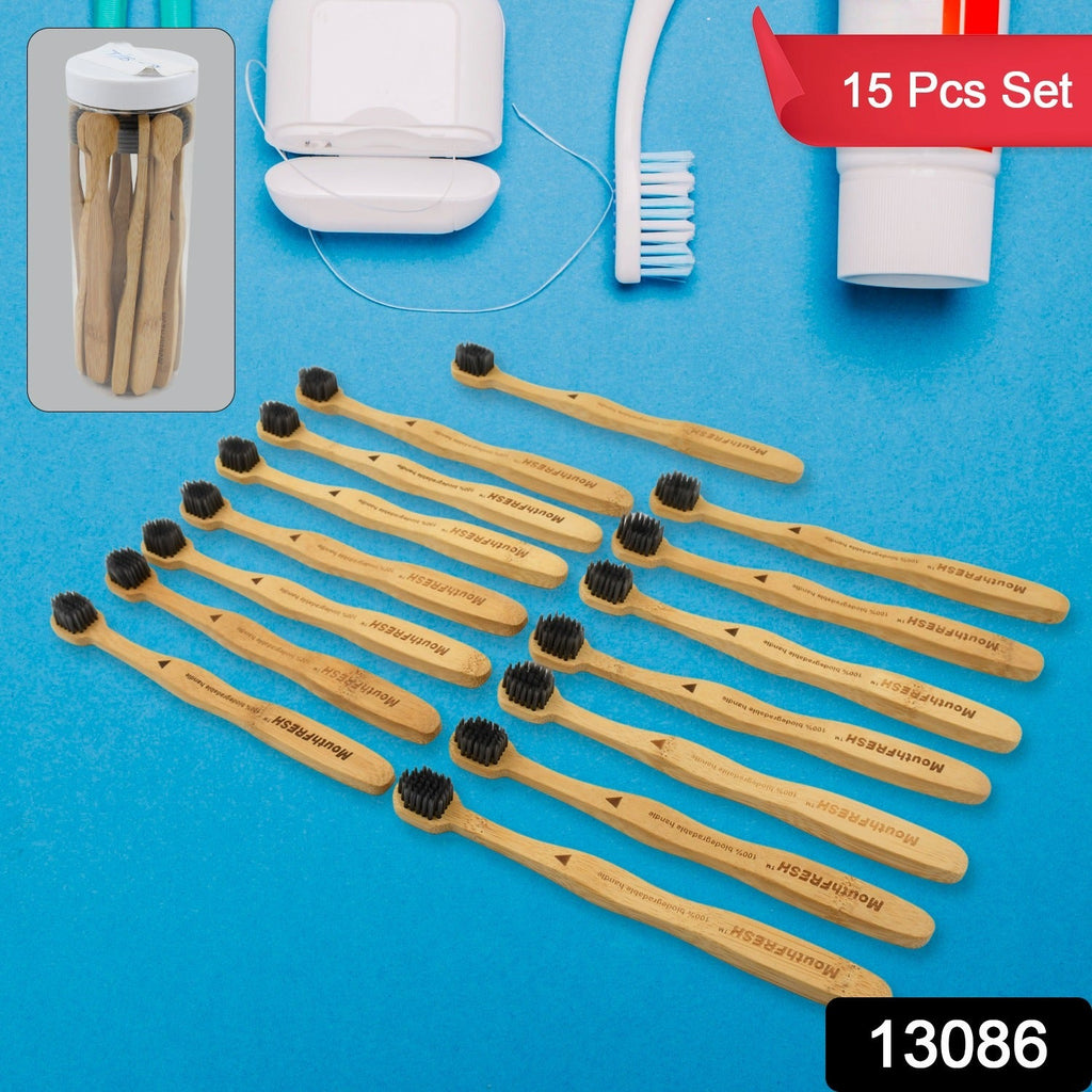 13086 Bamboo Wooden Toothbrush Soft Toothbrush Wooden Child Bamboo Biodegradable Toothbrush, Manual Toothbrush for Adult, Kids (15 pcs set / With Round Box)