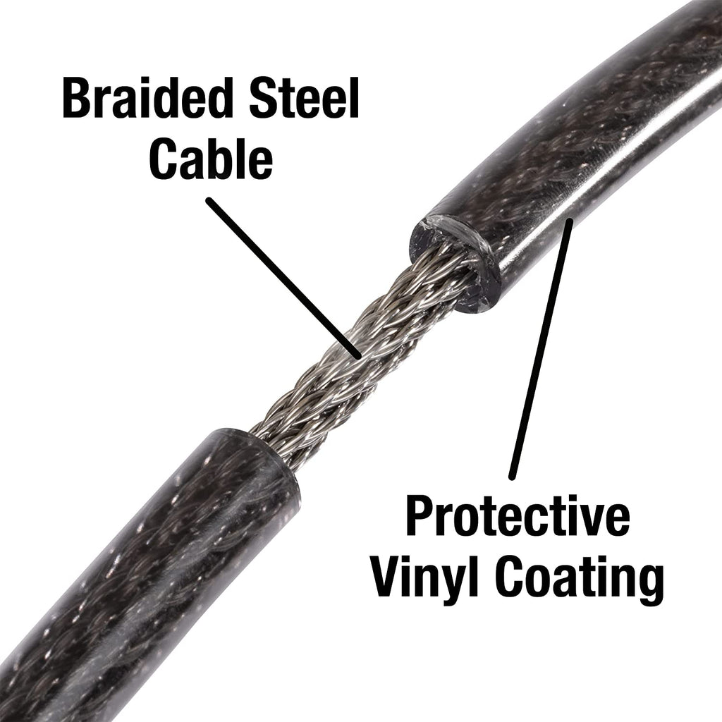- DURABLE DESIGN: Cable is made from braided steel for strength and flexibility; protective vinyl coating prevents scratching