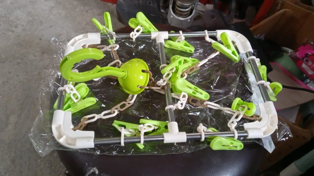 - The small washing spindle is made of dryable plastic and equipped with 15 clips. Perfect for small lingerie, socks,