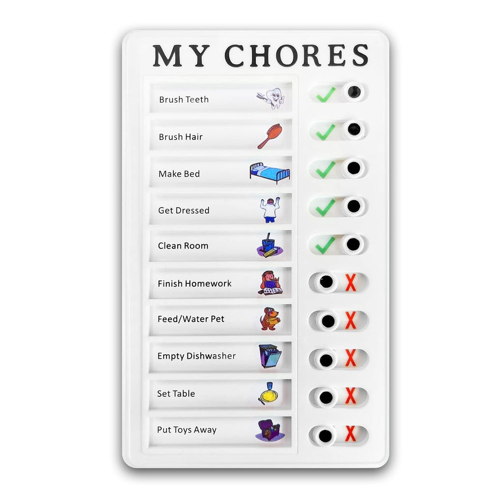 - my chores portable memo board in the package, which lists the housework tasks you should complete in a day, such as finish homework, fed/ water pet, brush teeth, etc.; You can hang it on the wall or put it in a prominent place to remind you to complete the day's housework\