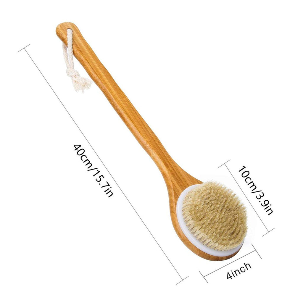 6700 Body Brush Dry Brushing Back Scrubber Shower Bath Brush Bamboo Long Handle Natural Bristles exfoliating Massage Improve Blood Circulation Cellulite