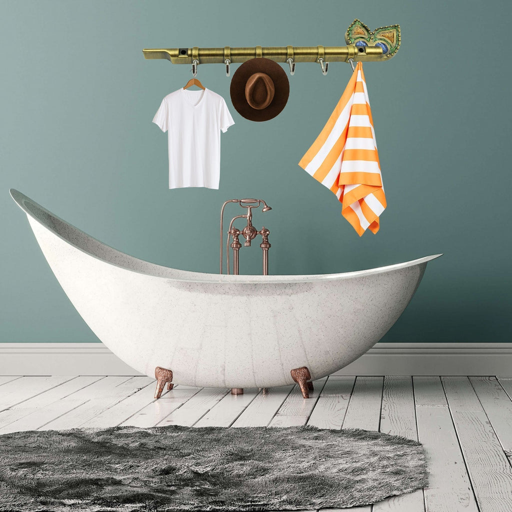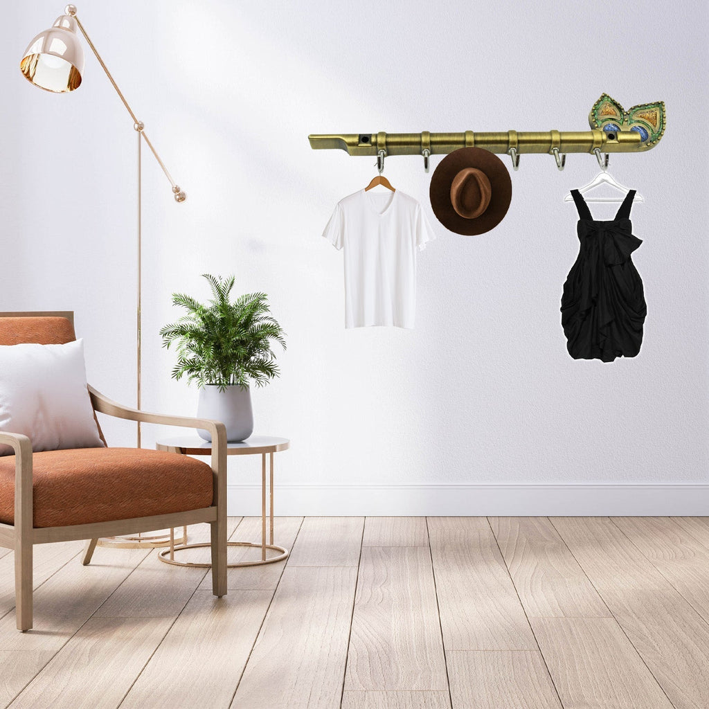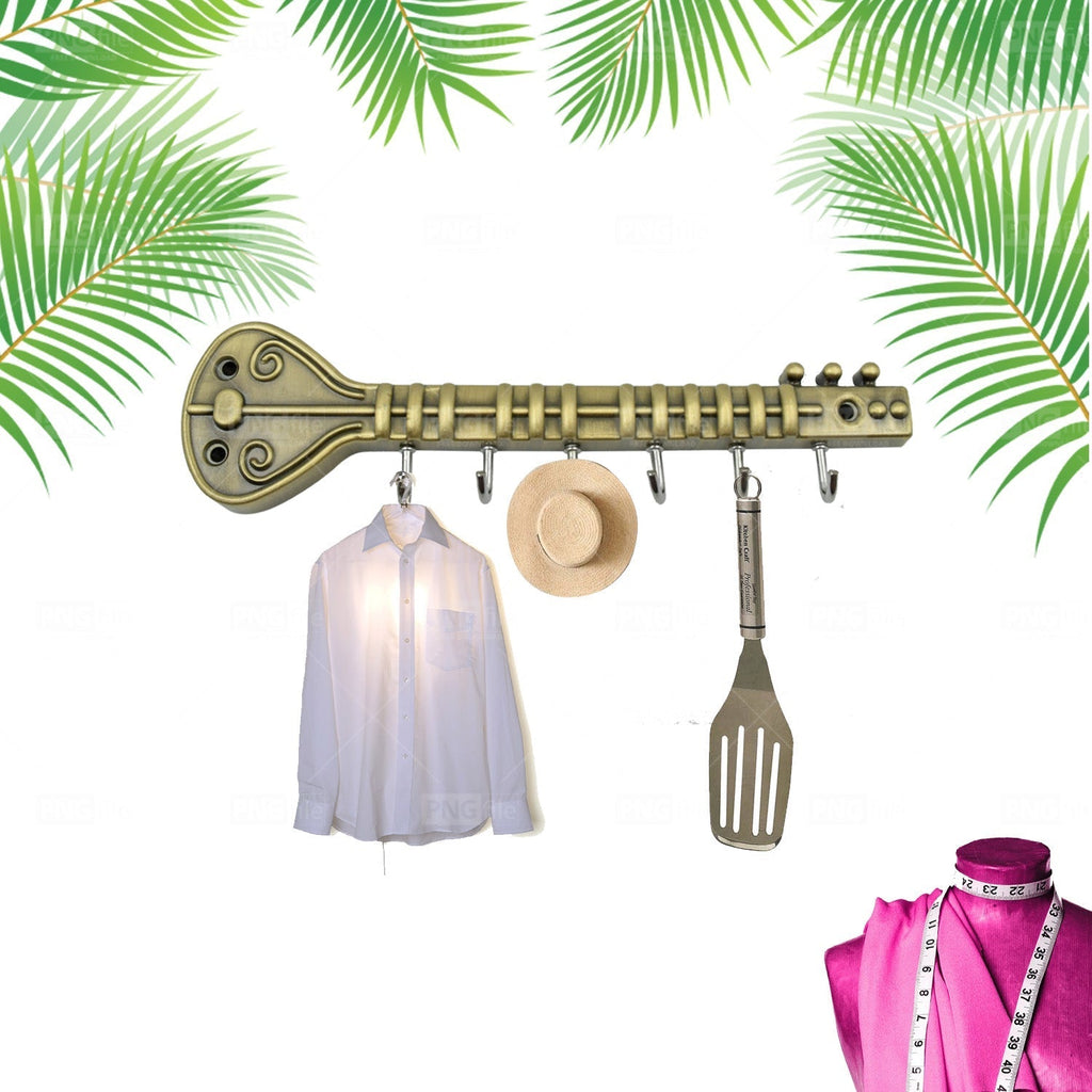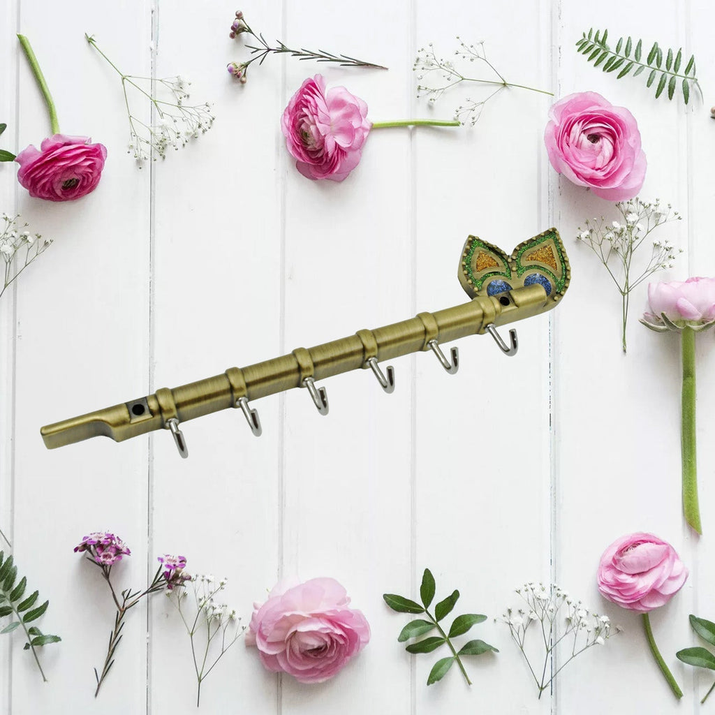 Metal Key Stand / Hanger / Holder for Home & Office Brass Key Hook / Holder Door Hooks Rail for Hanging Keys, Clothes, Towel Hook (1 Pc / Veena & Gun Shape, Lord Krishna's Flute and Peacock Quills Key Holder )