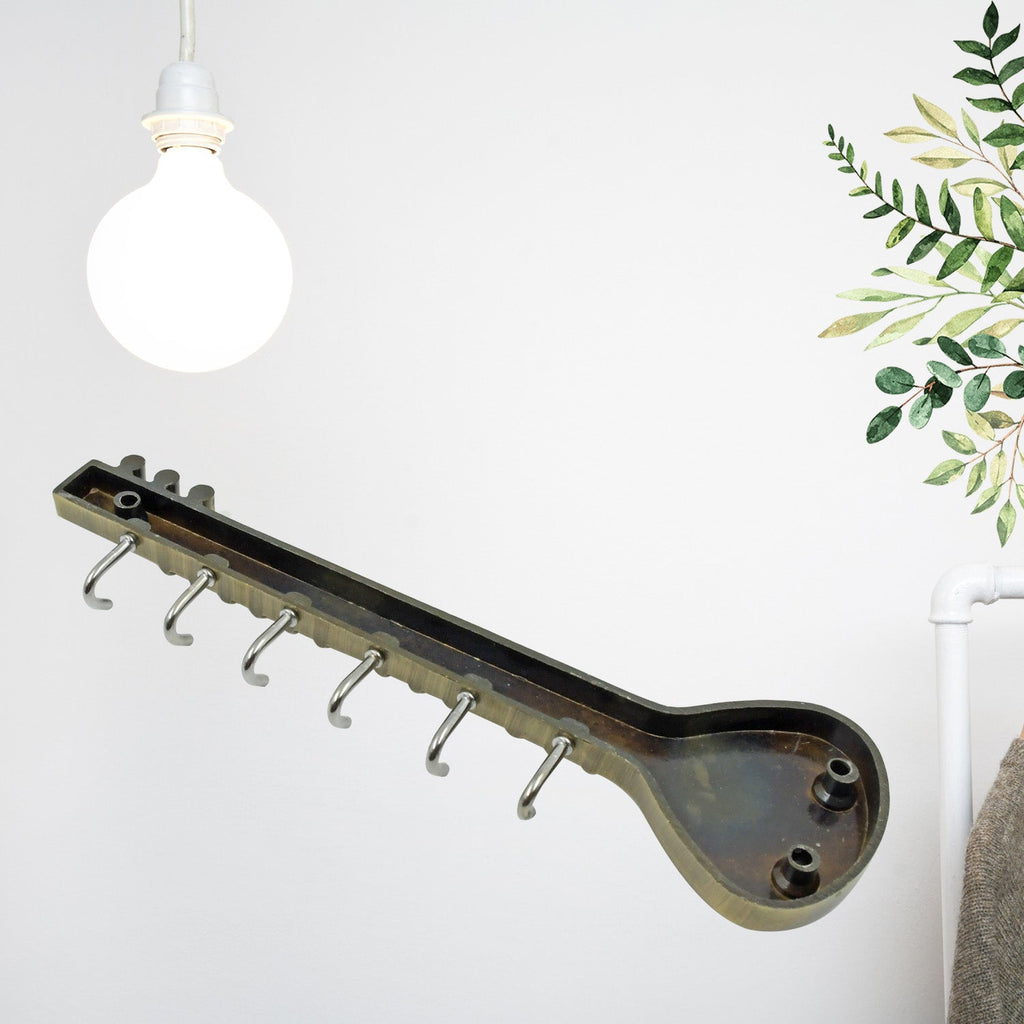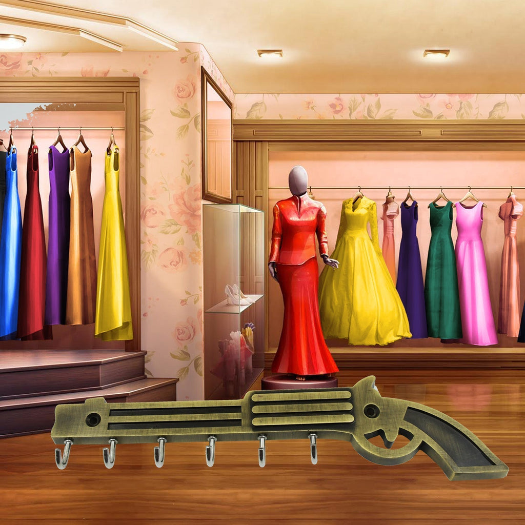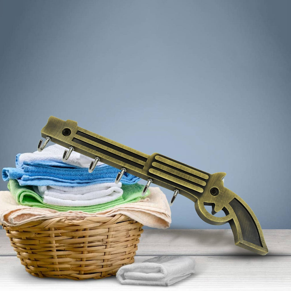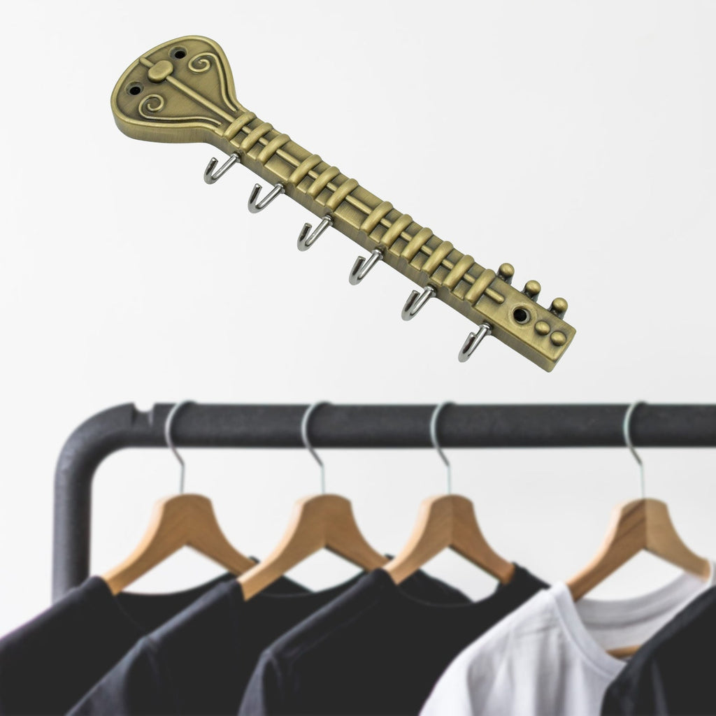 Metal Key Stand / Hanger / Holder for Home & Office Brass Key Hook / Holder Door Hooks Rail for Hanging Keys, Clothes, Towel Hook (1 Pc / Veena & Gun Shape, Lord Krishna's Flute and Peacock Quills Key Holder )