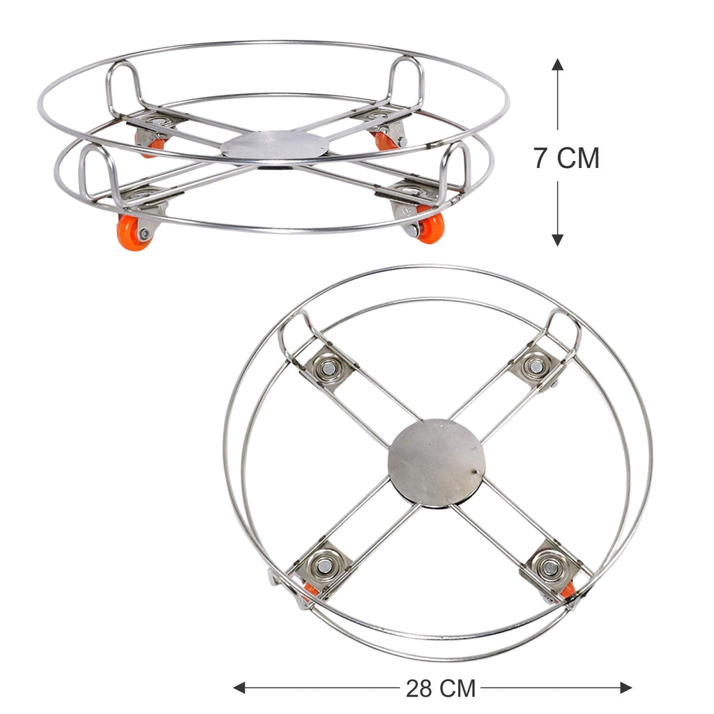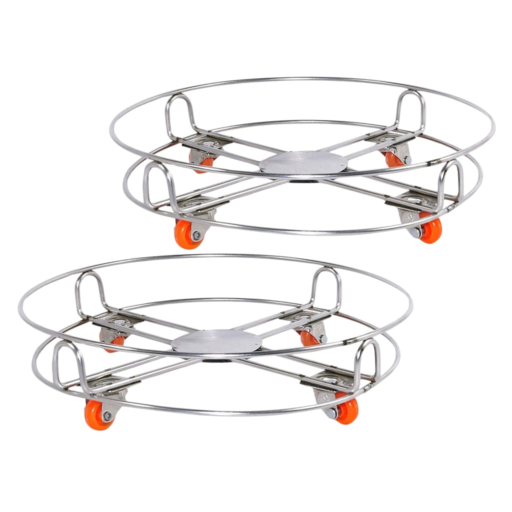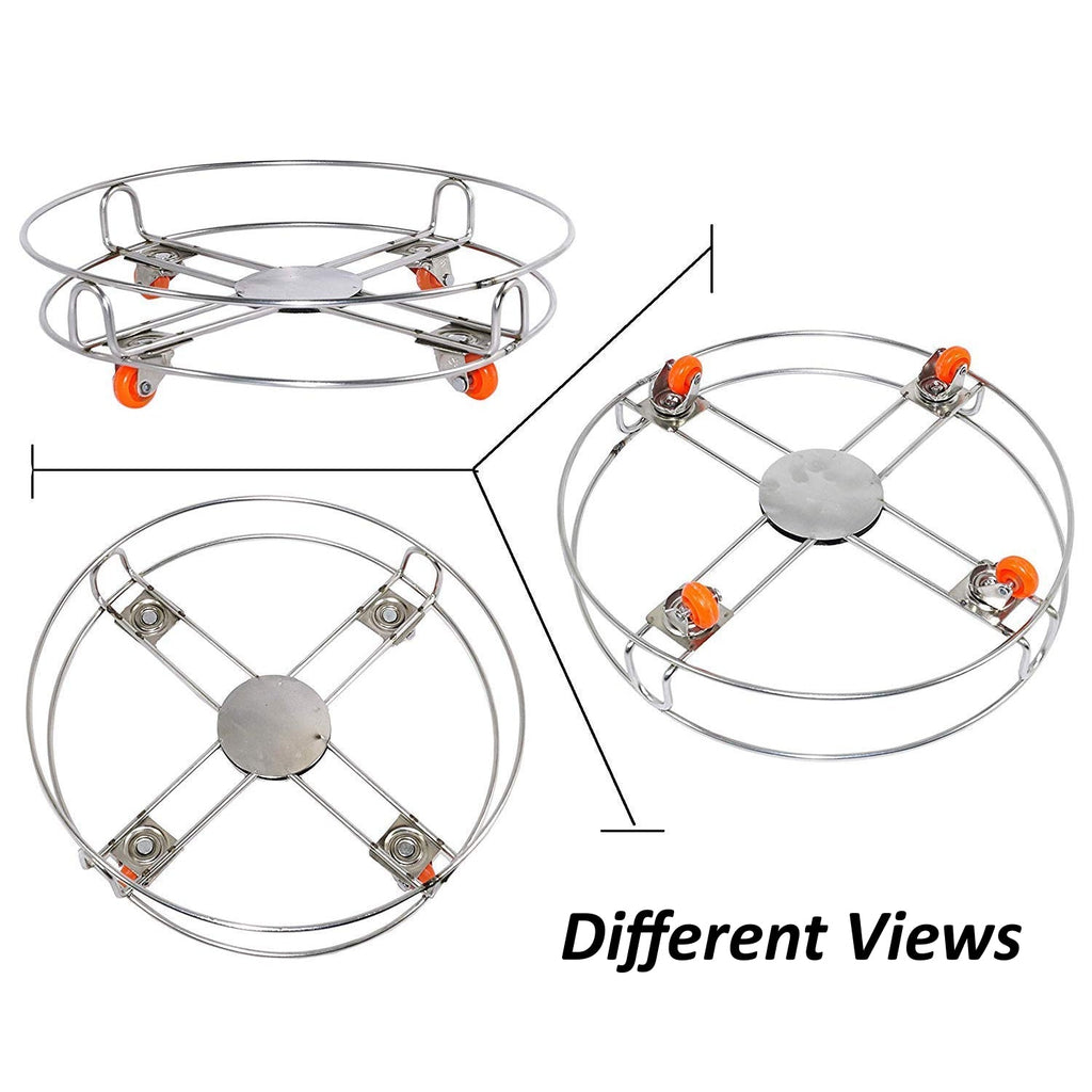 DeoDap Stainless Steel Cylinder Trolly with 4 Wheels (Silver)